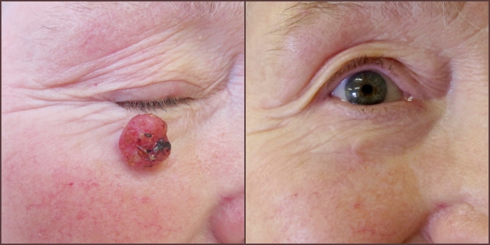 Tumours often arise on the nose, cheek and ear. Unlike other cancers, they rarely spread around the body so treatment can be very successful if diagnosed early.